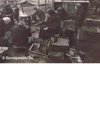 Nach dem Angriff auf die Alkett Panzerwerke, die Aufräumarbeiten. Borsigwalder Frauen sortieren Schrauben