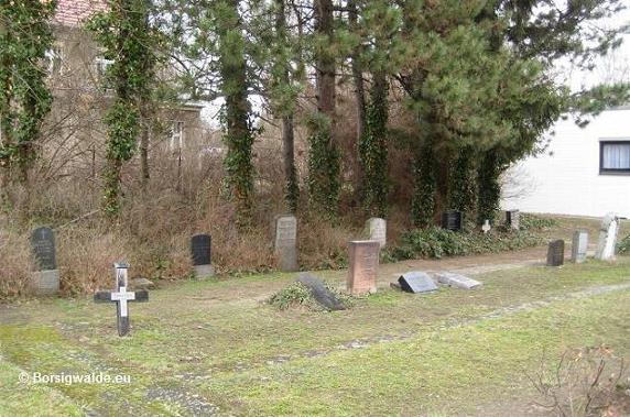 Auf dem Notfriedhof neben der Kirche in der Tietzstraße wurden im April 1945 die bei den Kämpfen um Borsigwalde umgekommende Einwohner und auch die jenigen, die sich unmittelbar vor dem Einmarsch der Russen oder kurz danach selbst getötet hatten, beerdigt. Die Toten waren zunächst in der Ruine des Kinderheimes aufgereit worden. Dann wurde ein langes Sammelgrab ausgehoben, in den die Toten ohne Särge bestattet wurden.Auch einzelne Personen die im Laufe des Sommers 1945 starben, wurden hier noch beigesetzt.Aus dem kirchlichen Sterberegister ergeben sich folgende Einzelheiten über den Tod der zuletzt beerdigten Personen: