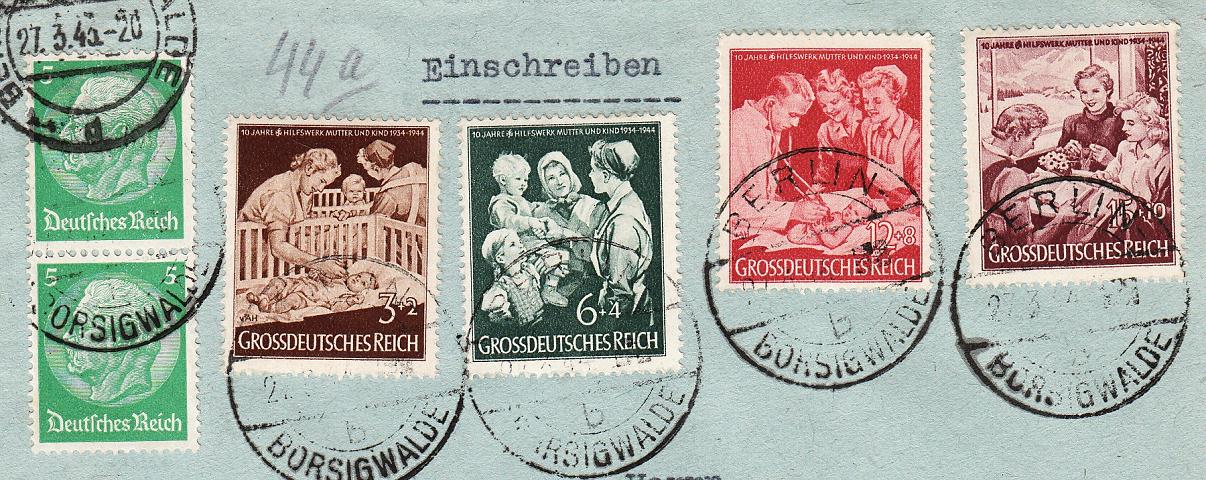 Hübsch gestaltete Briefmarken... abgestempelt am 27.03.1945 im Postamt Borsigwalde